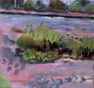 Rheinlandschaft I, 2006, 21x23cm, Acryl auf Nessel