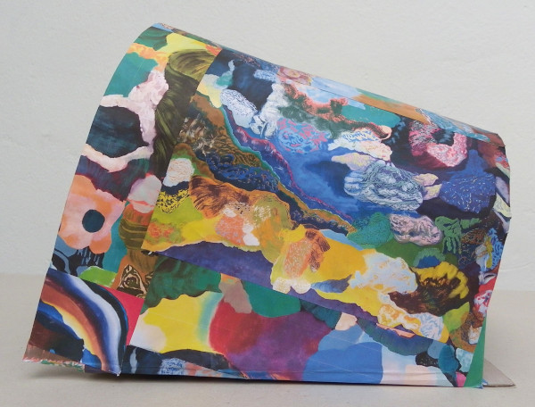 Modell „SMOOTH HABITAT“, 2023, Maßstab 1:10, H: 25 cm, B: 21 cm, T: 30 cm, Collage mit Ausdrucken auf Papier nach Bildern aus der Serie “Höhlen” auf Pappgerüst. Seitenansicht