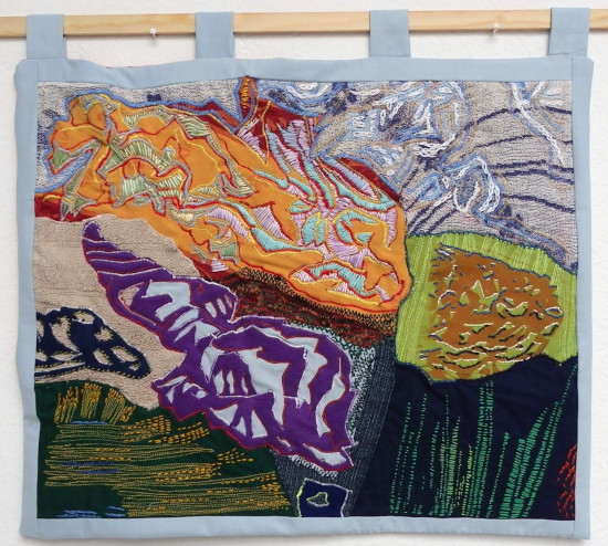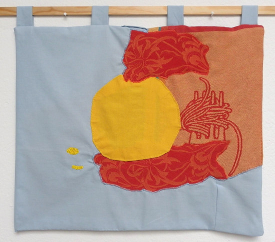 Höhle VII textil, 2023, 45 cm x 55 cm, Stoff, Näh- und Stickgarn